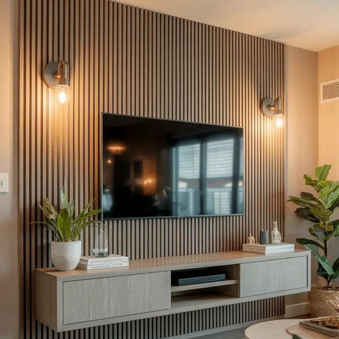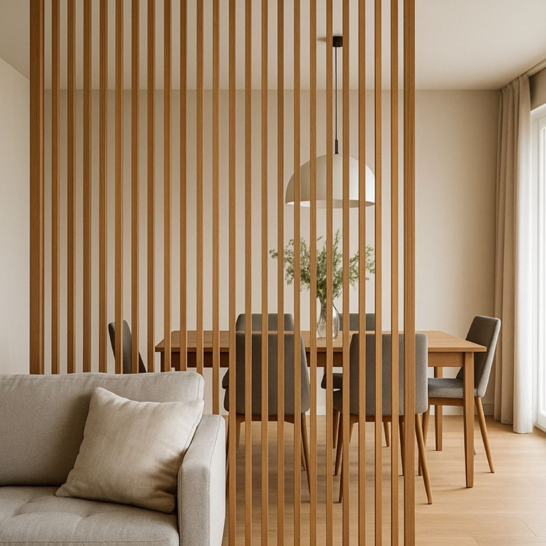 Painéis em madeira funcionam como divisórias, revestimentos de parede ou detalhes decorativos, trazendo aconchego, sofisticação e um toque natural aos ambientes. Além de decorativos, podem servir para organizar espaços, criar privacidade e valorizar o projeto arquitetônico.